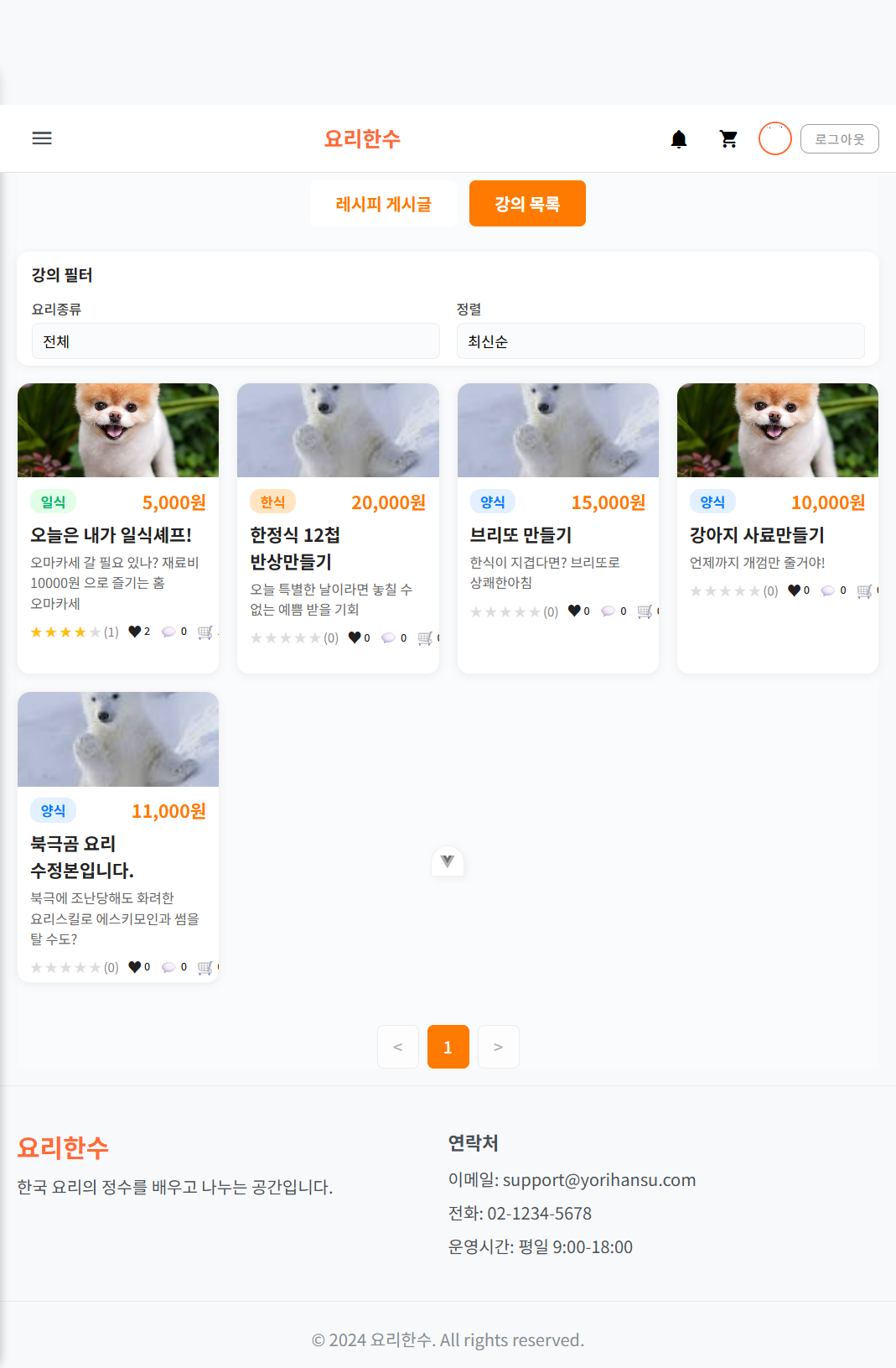 요리 연구가들이 요리관련 강의와 레시피를 공유할수 있는 서비스로서 구매와 결제까지 이어지는 강의 플랫폼을 개발하였다.