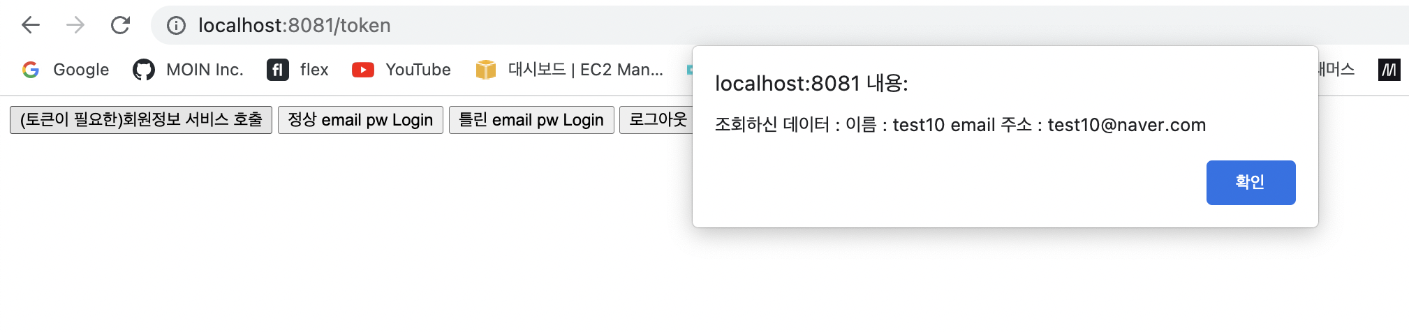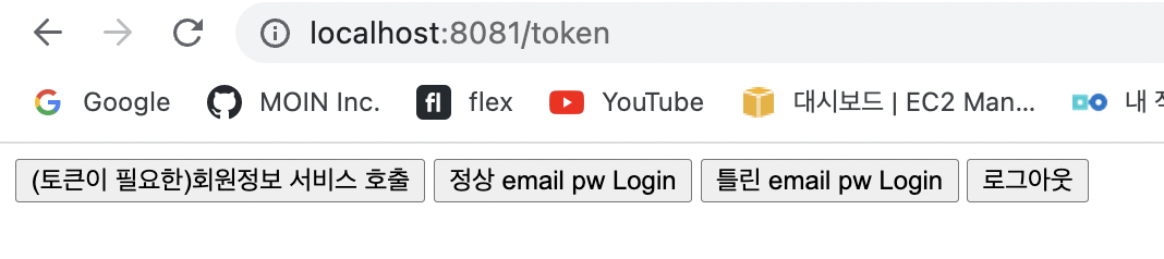 요렇게 생긴 UI를 통해 테스트를 진행할 예정이다. 토큰없이 회원정보 서비스 호출을 호출하면, 에러가 발생할것이고, 로그인 후에 token을 발급받고 api를 호출하면 정상적으로 호출이 되도록 할 것이다.