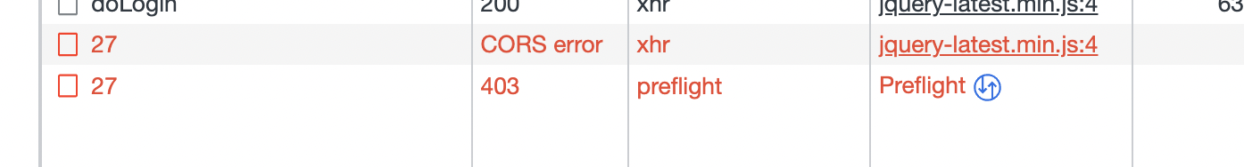 로컬 브라우저에서 api서버로 리소스를 요청할때 아래와 같이 XHR (XML Http Request) 요청을 보내기 전에, preflight를 통해, 서버의 허용여부를 체크하게 된다.