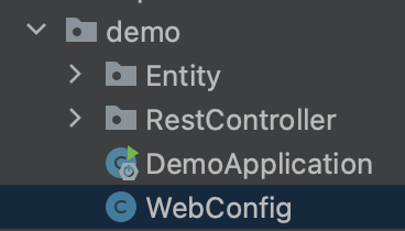 그러면 최초에는 DemoApplication만이 만들어져 있을 것인데, 아래와 같이 Entity와 Controller를 만들어보자.
